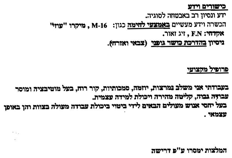קורות חיים של אלי להגשת מועמדות לקבע או למשטרה